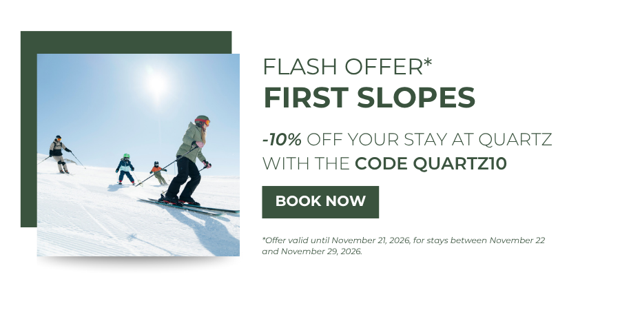 10% off your stay at the Quartz: Come enjoy the first slopes in Tignes with the code QUARTZ10 !