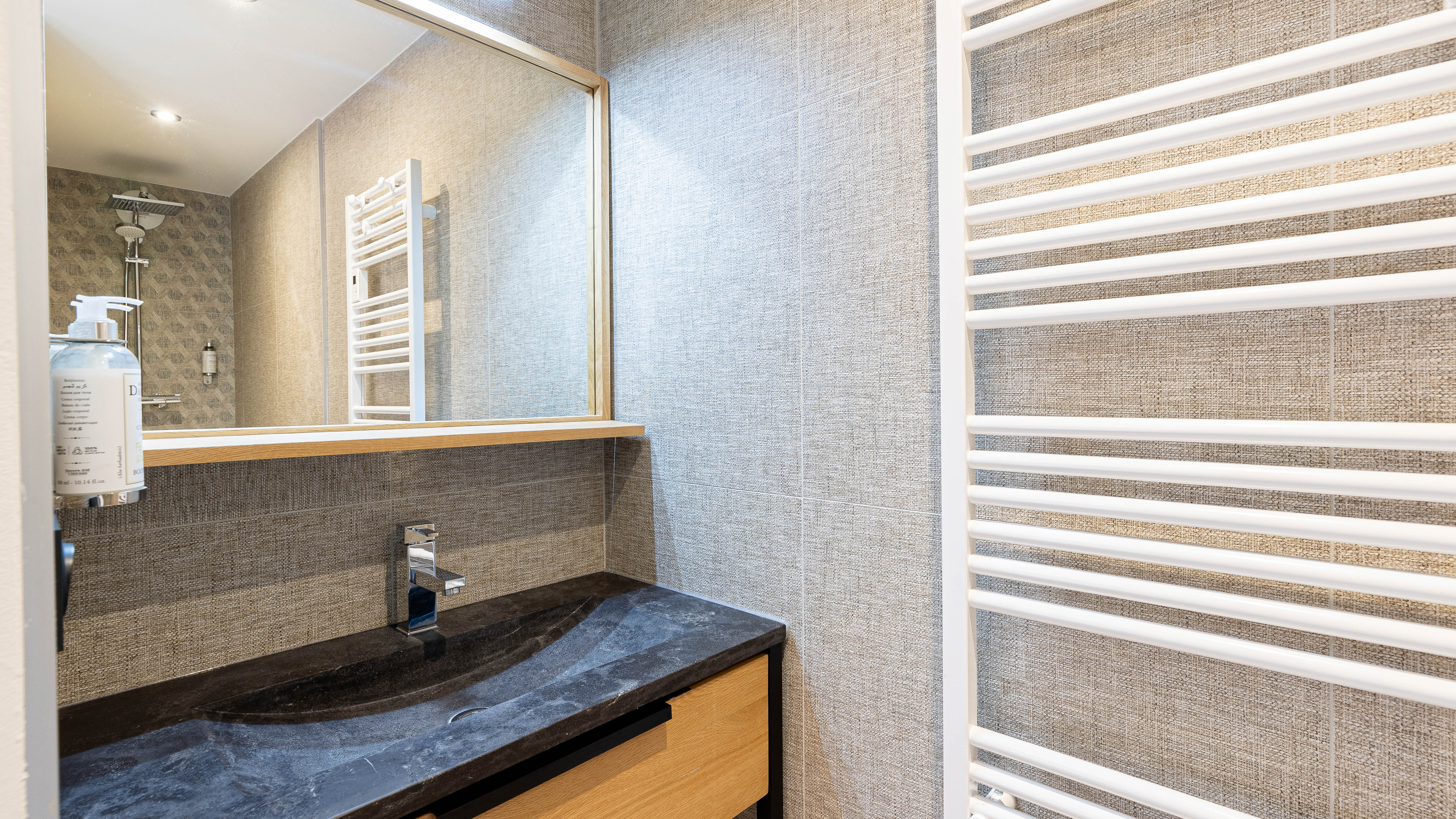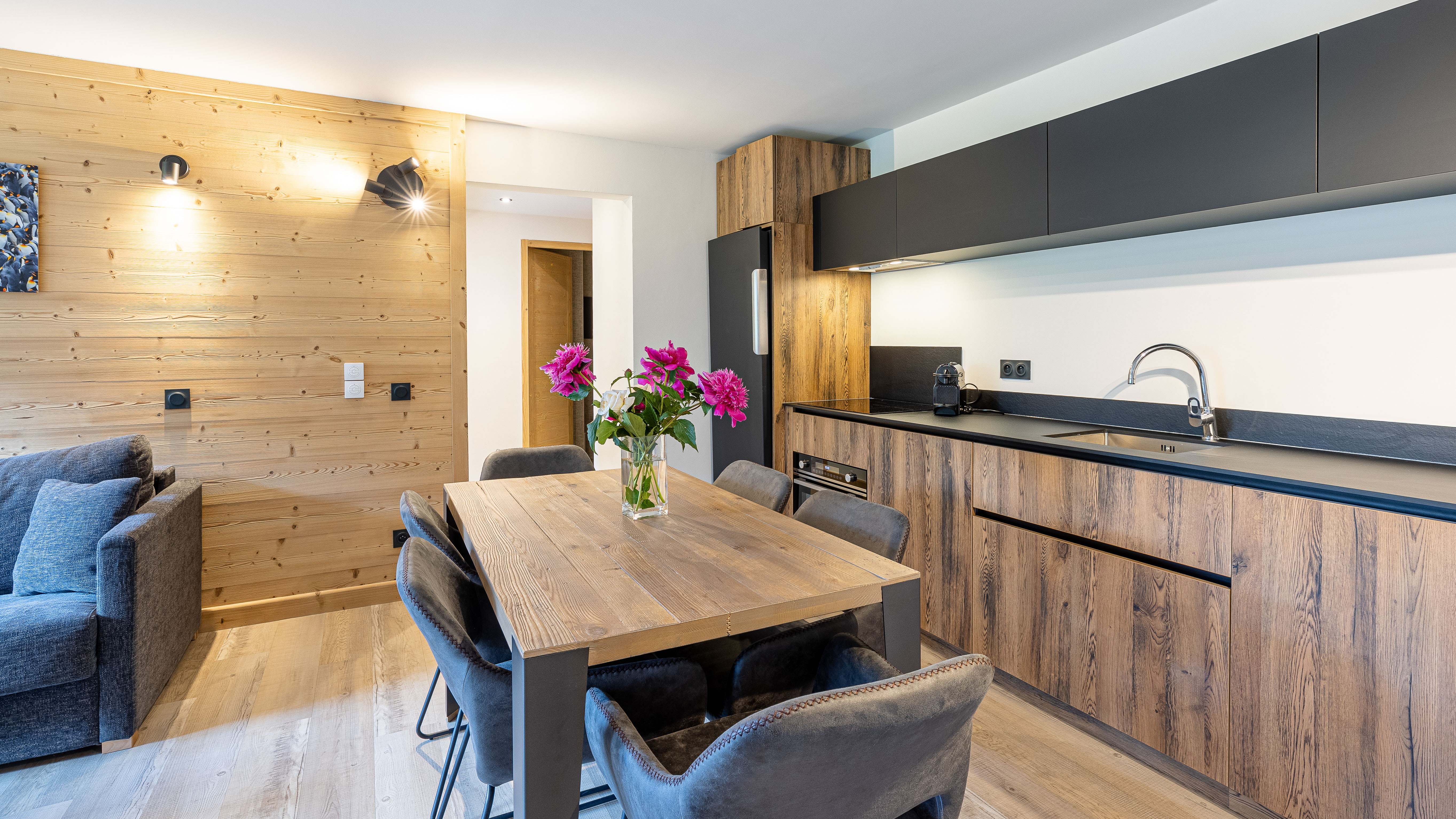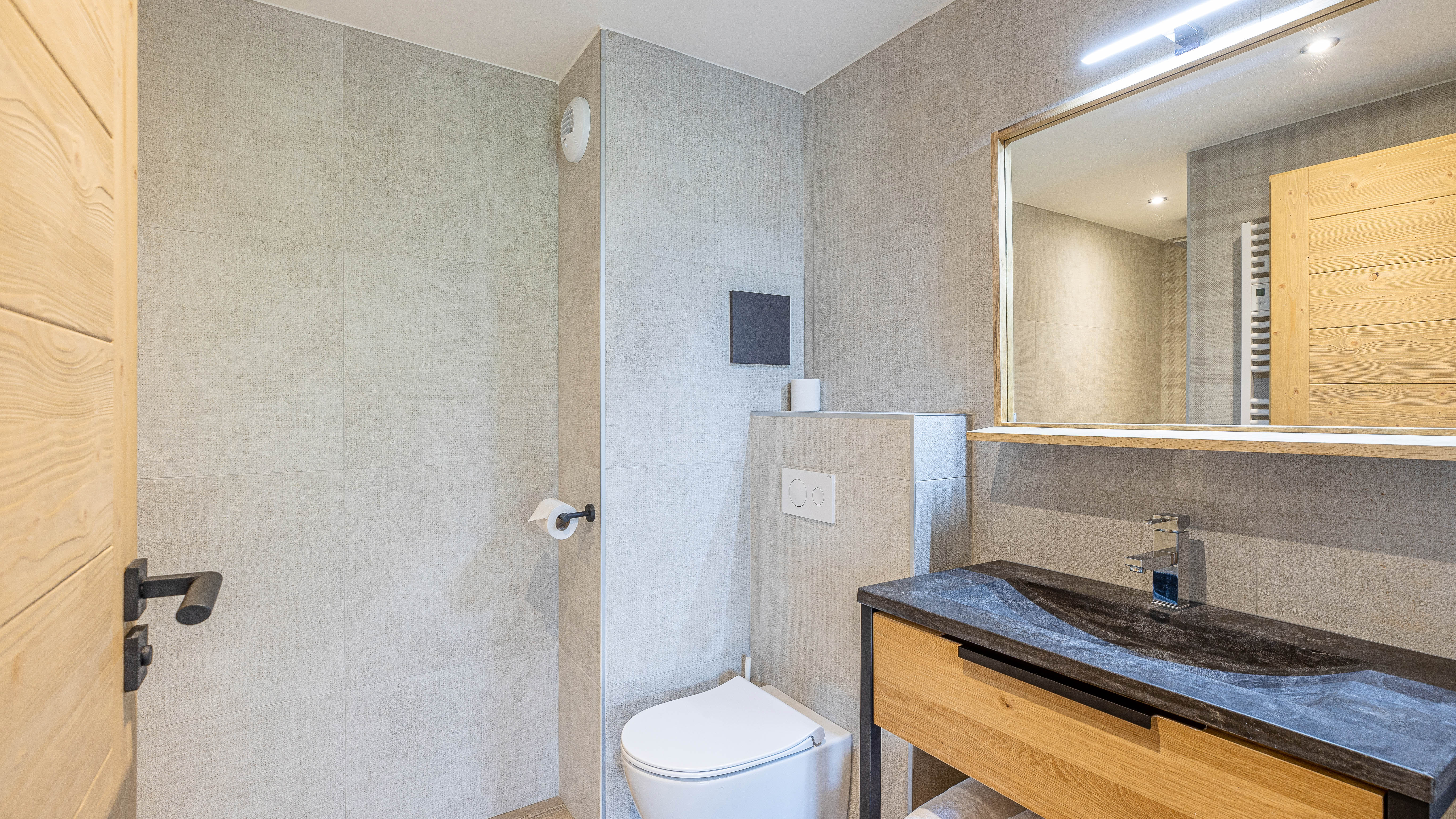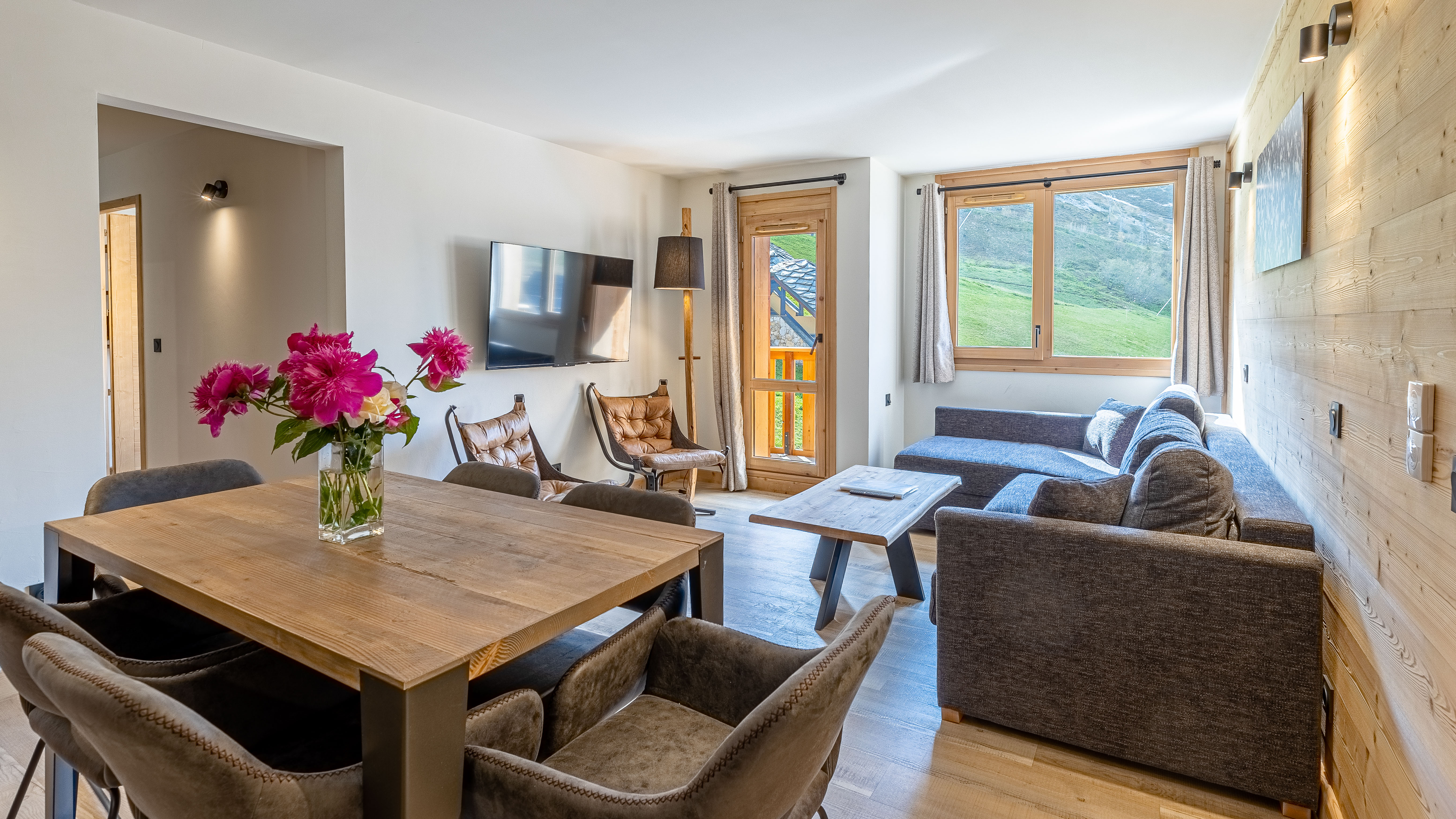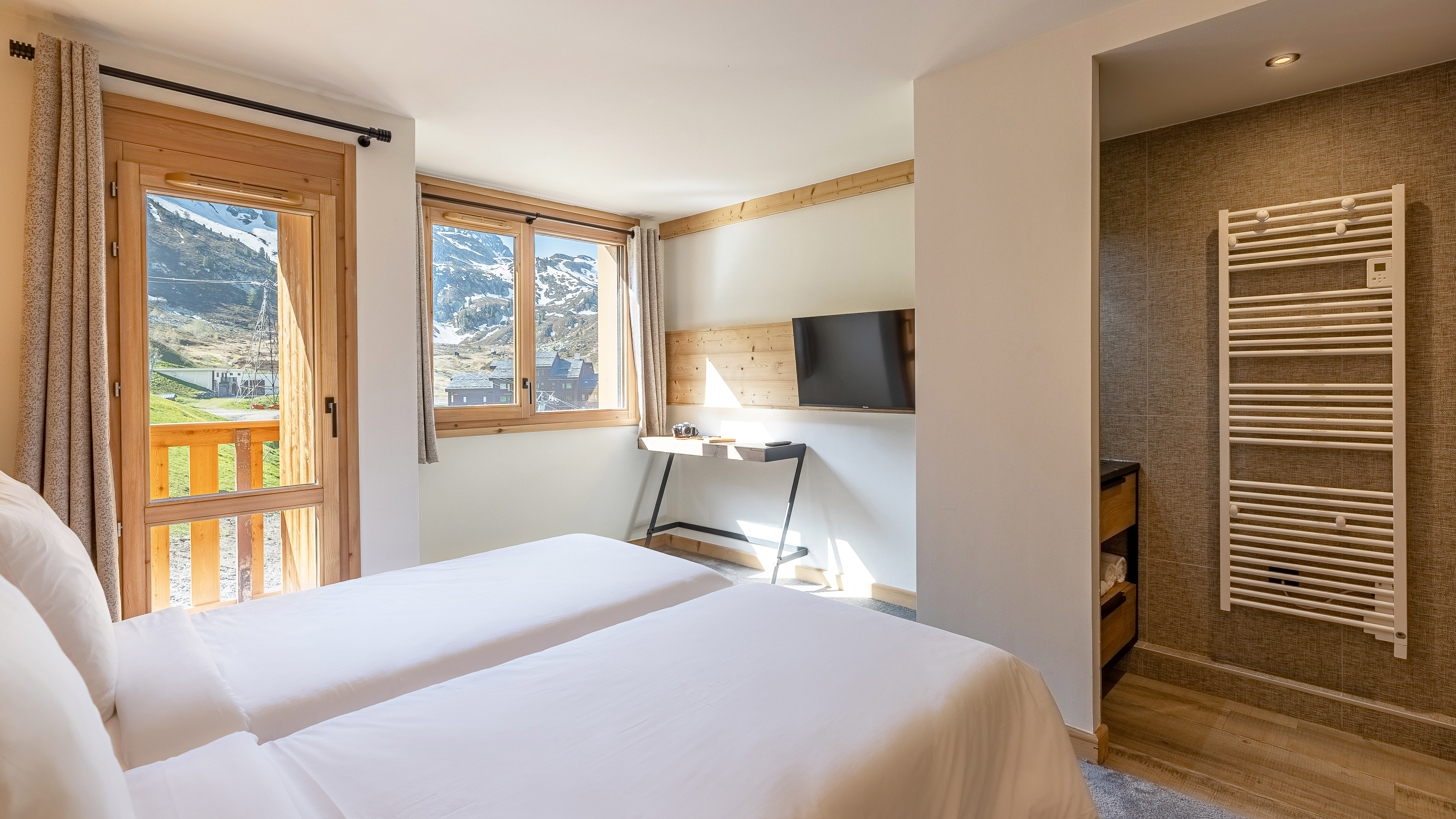 This cozy apartment on the 2nd floor can comfortably accommodate up to 4/6 people. It features a bright living room, 2 bedrooms (one with en-suite bathroom), 1 separate bathroom, a safe, a fully-equipped kitchen and a balcony. You'll enjoy a bright living room with a sofa bed (160cm). The little extra? A sauna integrated directly into the apartment. Perfect for relaxing after a day's skiing or hiking. Non-contractual photos
