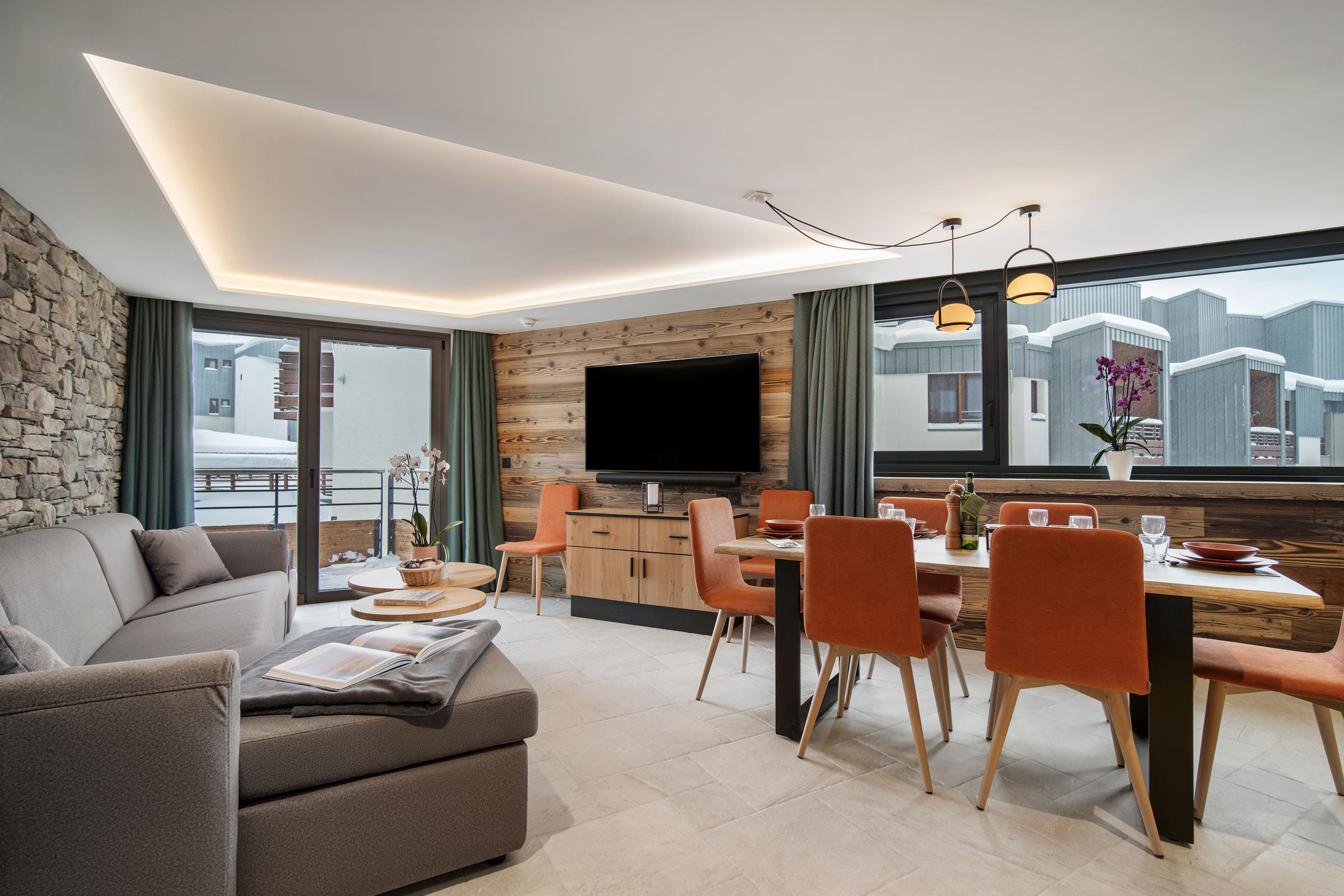 The Chalet Hôtel Quartz enjoys an ideal location in the heart of Tignes Val Claret, close to numerous shops and right on the snow front—ready for you to put on your skis! Designed to accommodate between 4 and 6 people, the apartment features 2 double en-suite bedrooms and a sofa bed in the living area. A beautiful living space with a view of the Grande Motte will provide you with some of your best holiday memories. The apartment offers high-end amenities, attentive hotel services, quality materials, and a meticulous design for a 100% mountain ski vacation experience. Be among the first to discover Tignes' new iconic aparthotel—opening in November 2024! *Please note, the photos are non-contractual.